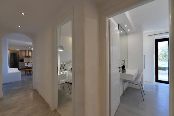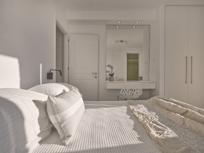 Αποτελείται από 2 υπνοδωμάτια με ντουλάπες εξοπλισμένες με στρώματα υψηλής ποιότητας, κλινοσκεπάσματα και πουπουλένια μαξιλάρια (το πρώτο με 1 king size κρεβάτι και το δεύτερο με 1 διπλό και 1 μονό κρεβάτι).