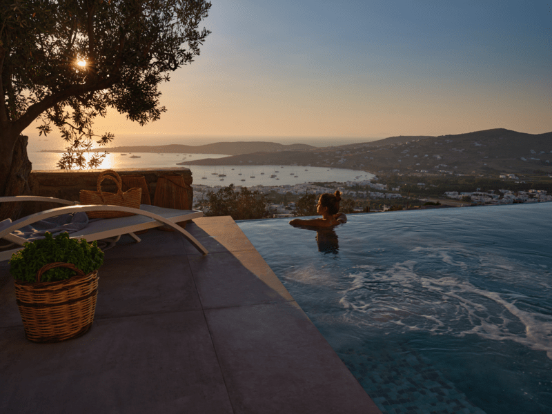Η Infinity sea view cosy villa with private pool είναι μια κομψή βίλα 2 υπνοδωματίων των 80 τ.μ., που βρίσκεται στον λόφο πάνω από την πόλη της Παροικιάς με ιδιωτική πισίνα υπερχείλισης & Jacuzzi προσφέροντας πανοραμική θέα στον κόλπο της Παροικιάς και τα κοντινά νησιά και ένα καταπληκτικό ηλιοβασίλεμα