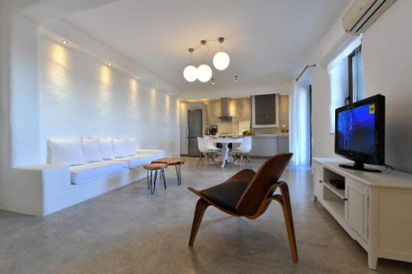 Με λιτές γραμμές και minimal διακόσμηση, μπορεί να φιλοξενήσει έως 5 άτομα.