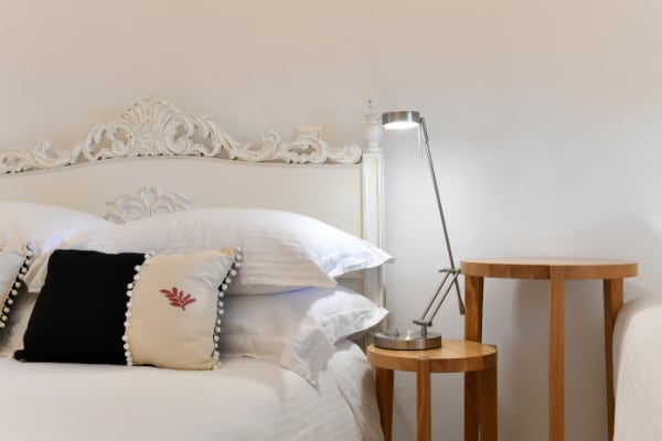 It consists of 2 bedrooms with wardrobes equipped with high quality mattresses, bedclothes and feather pillows (the first with a king size bed and the second with one double and 1 single beds).